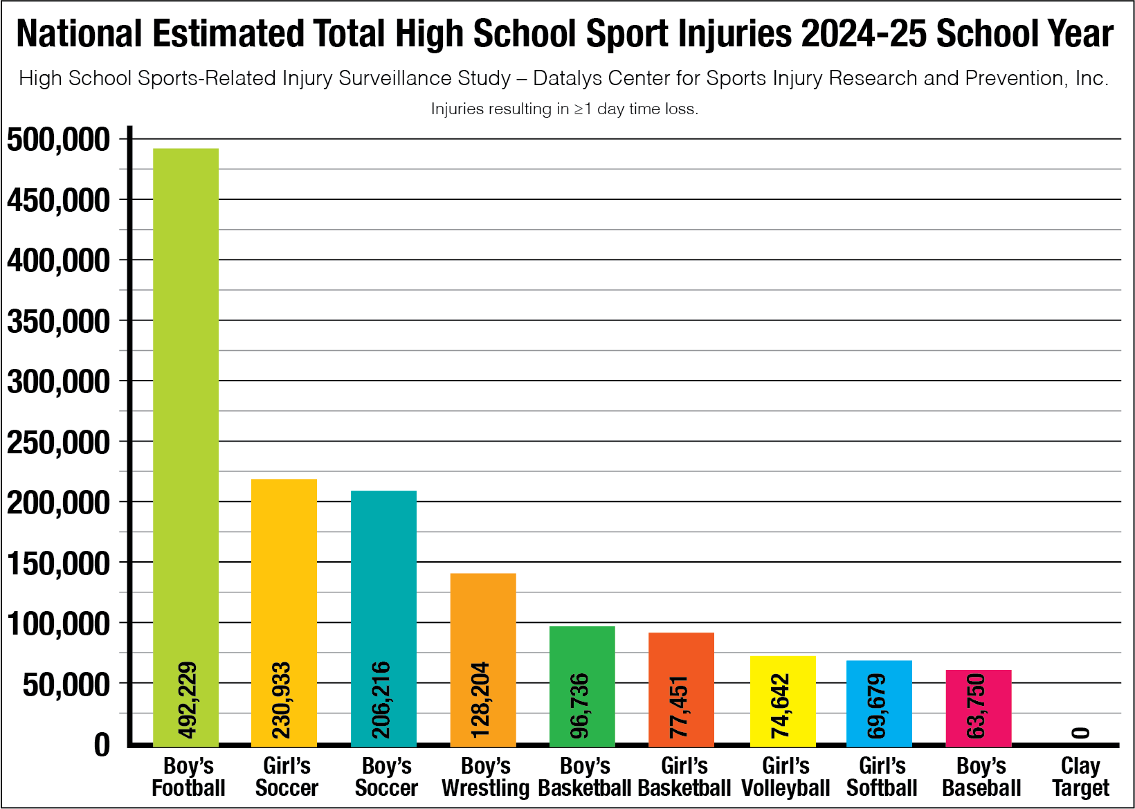 The National Federation of State High School Associations supports the High School Sports-Related Injury Surveillance Study. Since the 2005-06 school year, the National High School Sports-Related Injury Surveillance Study has monitored injuries among US high school athletes.